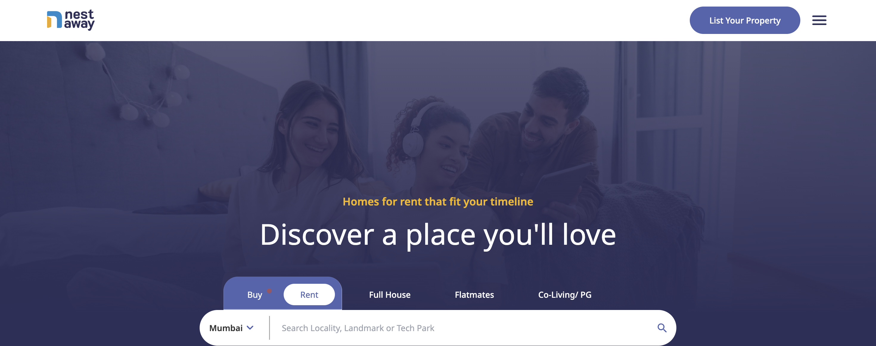 NestAway offers the most variety in Mumbai, from a single bed in a shared PG to full 3BHK managed apartments. Their platform is designed for those who want total transparency and the ability to choose their housemates digitally.