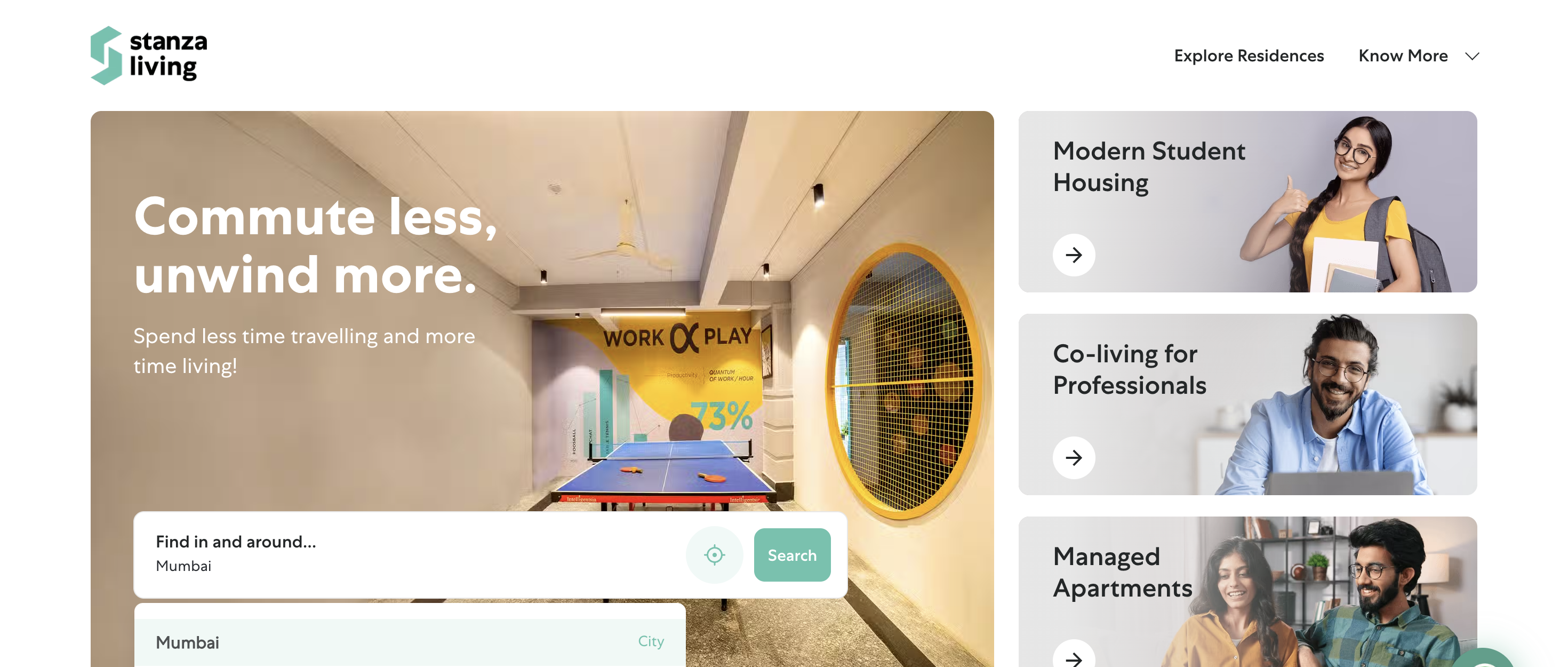 Stanza Living: The gold standard for tech-enabled managed housing, offering high-quality living and meals for students and professionals in Juhu.