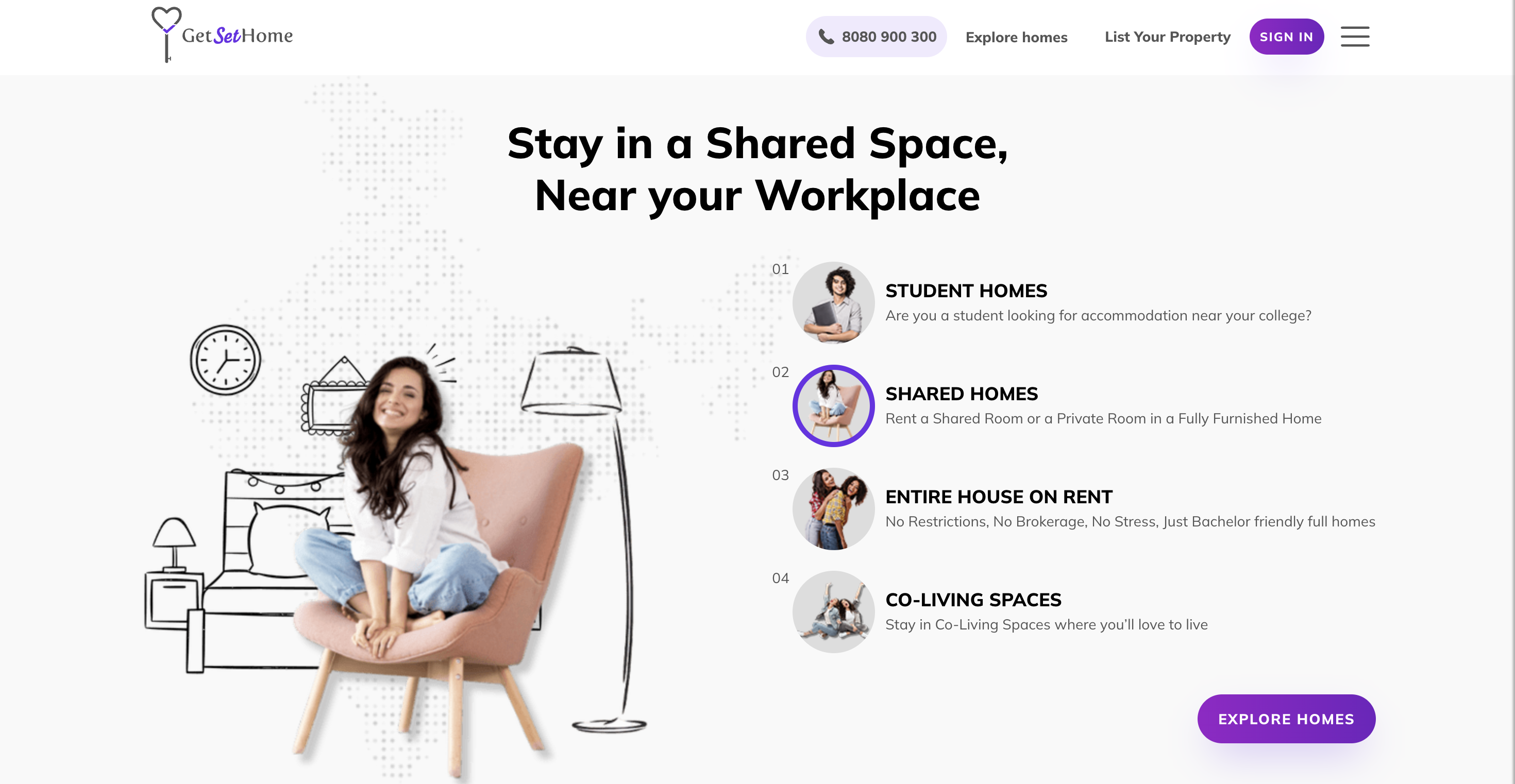 Get Set Home specializes in standardized, managed apartments that offer the comfort of a private home with the services of a hotel. They are particularly popular for their flexible tenancy policies and their ability to provide verified, zero-brokerage homes in prime residential societies.