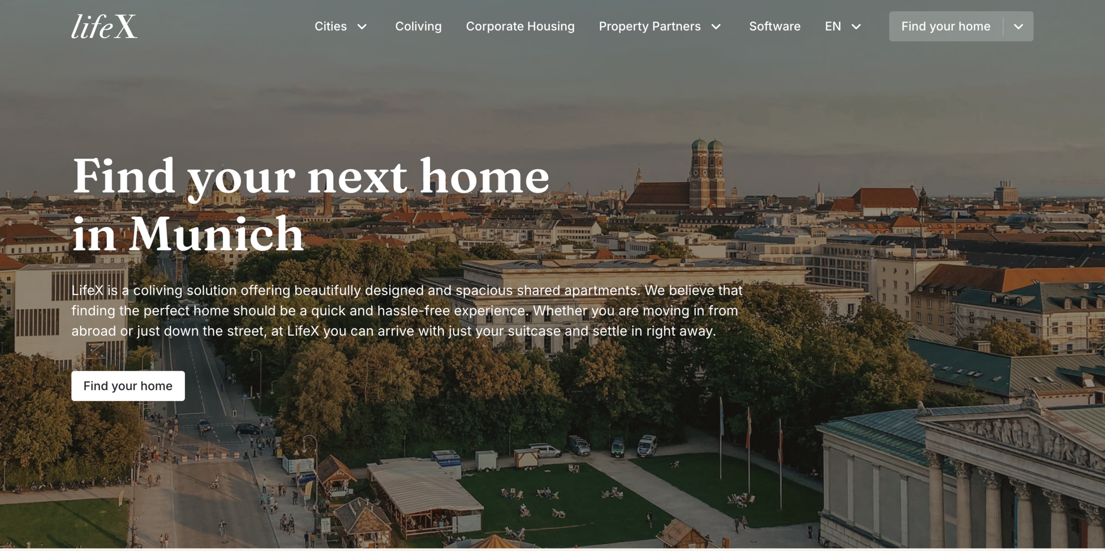 Lifex is a housing platform that provides furnished apartments for expats and families. They focus on "move-in ready" homes, often larger than the typical coliving studio, making them suitable for couples or small families relocating to Munich who need immediate functionality and KVR registration for multiple people.