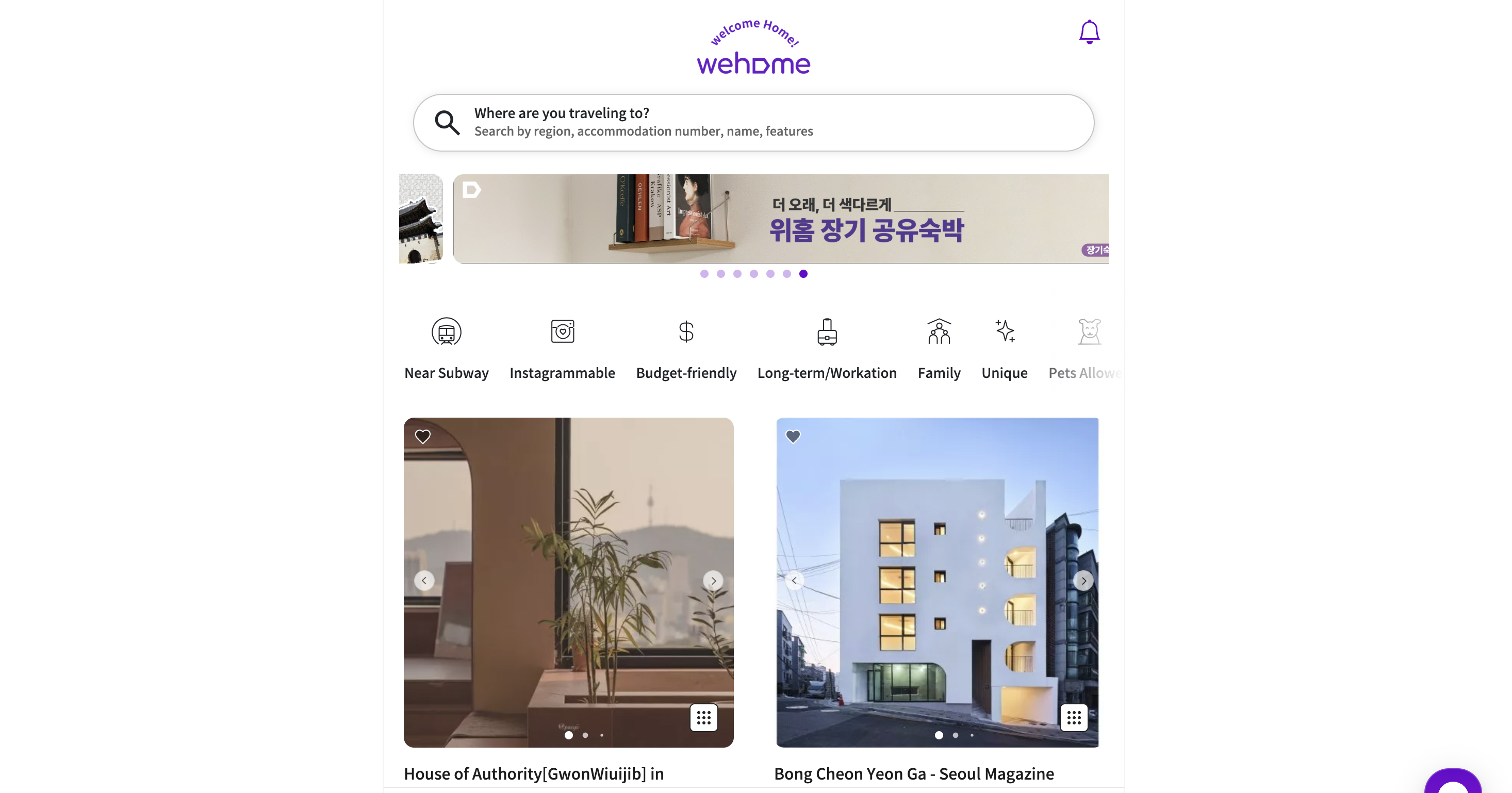 Wehome is often called the "Korean Airbnb." It is the only platform legally sanctioned by the Korean government for shared accommodation for foreigners in urban areas (under the ICT Regulatory Sandbox). It offers a vast inventory of "Hanoks" (traditional houses), villas, and modern apartments that are legal for short-term rental.